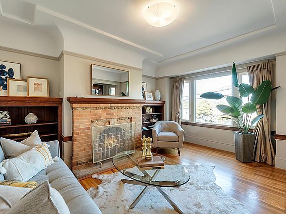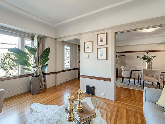 Discover this charming home nestled in a quiet area of sunny Crocker Amazon & enjoy stunning downtown San Francisco views as you sip a morning coffee on your front steps! This property combines the best of city living with the peace & quiet of a suburban feel, and features a warm & inviting living space with hardwood flooring & period details. Adjacent to the formal dining room is the bright living room offering a cozy fireplace & beautiful refinished wainscoting. The updated eat-in kitchen boasts SS countertops & plentiful soft-close cabinetry, with light streaming in from the large skylight above. Upstairs, you'll find a bathroom & two well-sized bedrooms along with a third room which can be used as a den or bedroom with a closet. Step outside to a large, private level backyard ideal for entertaining, gardening, or enjoying its versatile studio shed as an exercise, office, storage, or workshop space. Downstairs, you'll encounter a sizable tandem garage with ample storage space, reinforced foundation, updated electrical & copper piping, and an unfinished basement. Ideally located near San Bruno Mountain Park & an easy commute to downtown San Francisco or the Peninsula. Walking distance to Guadalupe Elementary, restaurants, shopping, & transportation. Don't miss out on this gem!