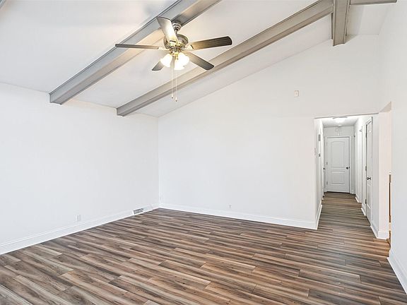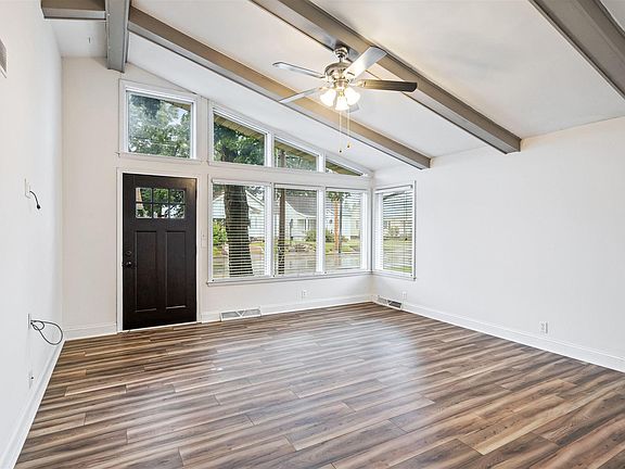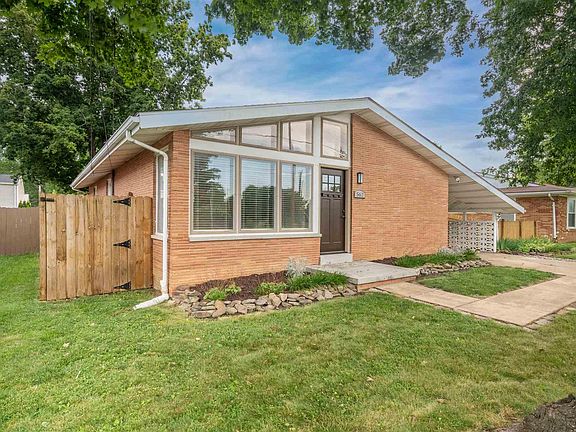 Move right into this updated 1960's style all brick ranch with vaulted and beamed 60's style ceilings, lots of angled windows with natural light, basement, 3 BRs, 1.5 Baths, huge carport that doubles as a covered patio, privacy fenced backyard, and more! The large Living Room also has new wood laminate floors and fresh paint. The Eat-In Kitchen has newer ceramic tile floors, peninsula with plenty of counter/bar space, pretty tin backsplash, newer LG stainless fridge, disposal, and ceiling fan, and tall faucet; French Doors to Carport/Patio, and cool retro wall oven that still works! All 3 BRs have closet organizers, and the Master Bedroom has 2 closets and private 1/2 Bath. The Full Hall Bath is updated and has a tub/shower combo, new fan and faucets. In the Hall is a pull-down newer stairway to the attic, and 3 storage closets. The 3/4 Basement offers many possibilities plus storage, and there is a handy utility sink next to the Laundry area. The fully privacy fenced Backyard is ideal for pets and play, and you will enjoy the stone patio with firepit. The large carport is a great place to host outdoor parties! There is a little storage shed at the back of the carport. The Sellers also added gravel to widen the driveway to park 2 cars. Updates include per Seller: all brandnew new windows except the LR, Hall Bath, and Bsmt: C/A 2015, Furnace 2011, Roof 2010, water heater, most of the paint, and more! Possession at Closing!