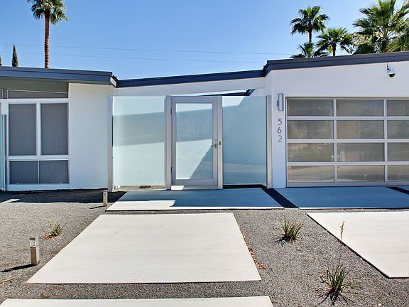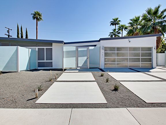 Butterfly Meiselman located in the popular area of Sunrise Park in Central Palm Springs in close proximity to downtown shopping, restaurants and nightlife. A wonderful remodel created this modern compound with front wall of opaque glass for privacy and light, clerestory windows and west facing mountain views. The home features all the charm of mid-century with 21st Century updates including modern cabinetry, stainless appliances, gorgeous granite counters and backsplash in kitchen and same cabinetry and granite in the master and guest bathrooms. The home also offers tiled floors in main areas and carpet in bedrooms. The 2-car garage has been updated with a glass and stainless front. Glass sliding doors and large windows overlook the updated pool with chair bench and newer raised spa. Dining area can be easily converted back to 3rd bedroom. Enjoy this tranquil private retreat with fruit trees and desert landscape full time or as a second home. This is true Palm Springs life-style.
