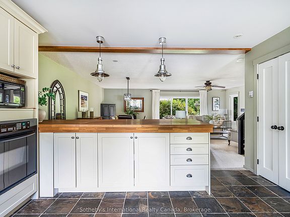 Welcome to 562 Oxbow Crescent, a tastefully renovated end-unit townhome nestled in a quiet, tree-lined pocket of the sought-after Living Stone Resort. Offering a perfect blend of modern updates and natural surroundings, this home enjoys an unbeatable location just minutes from downtown Collingwood, Blue Mountain Resort, Alpine, Craigleith and Osler ski clubs, as well as local beaches, trails, shops, and restaurants.The main floor has been thoughtfully designed with open-concept living in mind. At its heart is the renovated kitchen (2023), complete with oven with stove top, additional wall oven, oversized butcher block eat-in counter, abundant cabinetry, a contemporary backsplash, and upgraded lighting. The dining area opens seamlessly into an oversized living room, where a wood-burning fireplace provides a warm focal point. New sliding doors extend the living space outdoors to a covered patio, ideal for private gatherings or quiet relaxation. A renovated powder room on this level adds both style and convenience. Upstairs, the home offers four spacious bedrooms, highlighted by a luxurious primary suite. Its renovated ensuite bathroom (2023) features heated floors, a glass walk-in shower, a new vanity, and elegant gold-accented fixtures. From the primary, step directly onto a brand-new terrace (2024) spanning the width of the homean inviting spot for morning coffee or unwinding in the evening. Three additional bedrooms provide versatile options for family or guests, while the renovated four-piece bathroom impresses with heated floors, modern finishes, and a built-in tiled niche. Notable updates include all-new windows (2022) and a double-sized storage shed offering ample room for skis, bikes, and seasonal gear. Combining stylish renovations, a functional layout, and close proximity to the areas premier four-season amenities, this property is equally suited as a full-time residence, weekend escape, or investment opportunity.