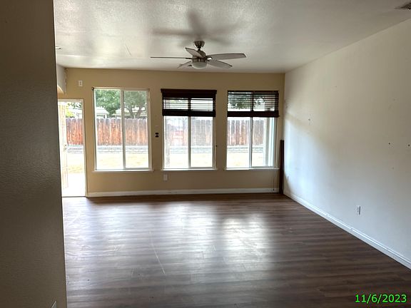 This SW Lemoore home features 3 bedrooms, 2 full bathrooms, large living room, formal dining area and features an eat in kitchen with breakfast nook. Indoor laundry, covered patio, 2 car attached garage and another 1 car garage with access from the side of the house.