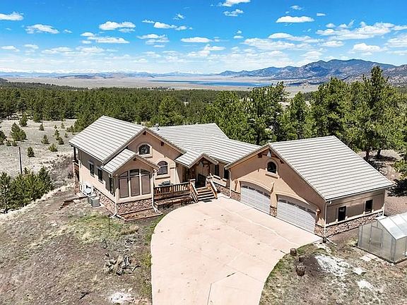 Welcome to Elk Horn Ranch, a truly exceptional and private mountain retreat set on 82.94 deeded acres in picturesque Park County, Colorado. This legacy property offers the rare combination of luxury, seclusion, and natural beauty, making it a perfect escape from the bustle of daily life. The centerpiece is a thoughtfully designed 4,348-square-foot custom home featuring 3 spacious bedrooms and 4 well-appointed bathrooms. With vaulted ceilings accented by exposed wooden beams, stunning granite countertops throughout, and German-engineered drop-down steel window shutters, the home blends rustic charm with refined finishes. The finished basement includes a theater room, wet bar, and ample storage space—ideal for entertaining or extended stays. The ranch enjoys adjudicated water rights to both Gary's Pond and Glen's Spring, feeding a year-round stream that flows peacefully through the property and sustains a tranquil fishing pond with a dock. The eastern boundary adjoins over 45,000 acres of Pike National Forest, offering endless hiking, hunting, and horseback riding. Additional features include two domestic wells, a concrete tile roof, two 1,000-gallon propane tanks, and full perimeter and cross fencing. Elk Horn Ranch is not just a home—it's a mountain sanctuary designed for generations to enjoy.