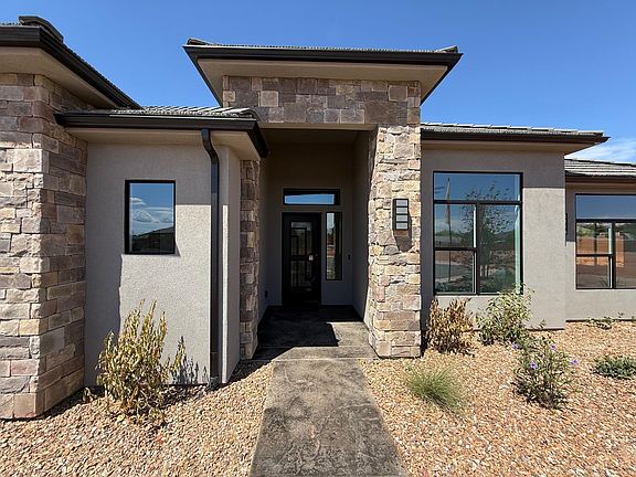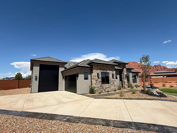 The kitchen cabinets are a rich Iron Ore color around the perimeter with a beautiful, light knotty alder island. The home has lovely quartz counters throughout, and a beautiful iron front door. The 39.1 RV garage with a 10X14 door has so many possibilities, AND there is room for RV parking on the side (and then some). Close to trails, Tuacahn Amphitheatre, Snow Canyon, and Gunlock Reservoir.