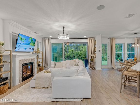 Soaring 2-story entryway with beautiful lighting greeting you into your open living room with LARGE 8' sliding doors, gas fireplace with upgraded mantle, a beautiful kitchen w/Quartz countertop, a large island, 42'' white shaker style cabinetry, a stone backsplash, KitchenAid appliances, a farmhouse sink, SPACIOUS primary w/ Tray ceilings, CUSTOM closet, spa-like bath with large window overlooking preserve, 4 BDRMS & laundry with cabinetry upstairs, Quick golf cart ride to schools, shopping, restaurants, 2 mins to intercostal, 2 private waterparks, 5 miles from beach, unlimited nature trails. Great neighborhood for children.