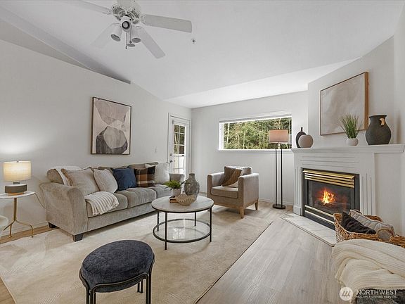 PRICE IMPROVEMENT! Enjoy the Tree Top and Mountain Views from Your Top Floor 2BR/2BA updated Condo! Enter your Peaceful Oasis to find Vaulted Ceilings with Fans, Cozy Gas FP, Kitchen w/Bar Seating, Full Size W/D, Updated Bathrooms featuring New Vanities with Quartz Counters (2022), & New LVP (2022) in LR, DR, Kitchen,& Bathrooms! Retire to your Primary BR with En-Suite BA, WIC, Custom Black-Out Shade, & Slider to your Serene Balcony which overlooks a Private Greenbelt for your Morning Coffee! Sunny Secondary BR with oversized Mirrored Closet Doors & Large Picture Window to Peek-a-Boo Mountain views! Private Garage w/space for Storage. Well-Maintained Keaton's Landing is in Mukilteo SD & convenient to I-5, Boeing, and Shopping!
