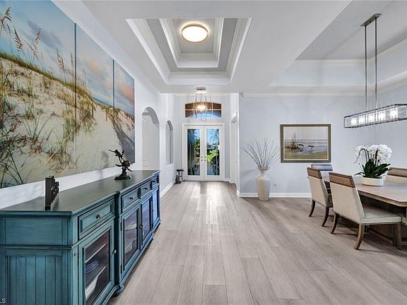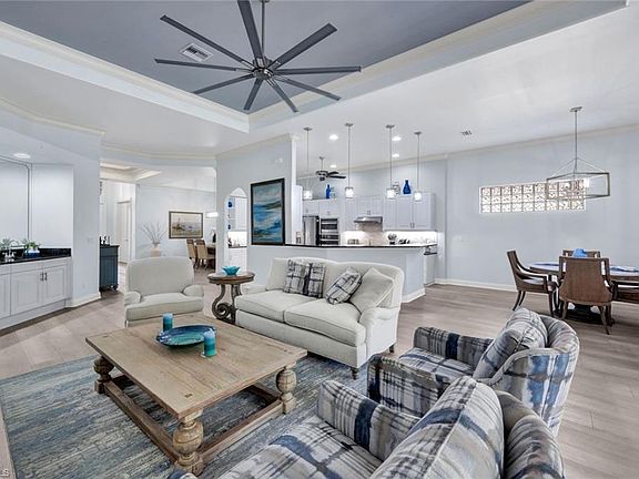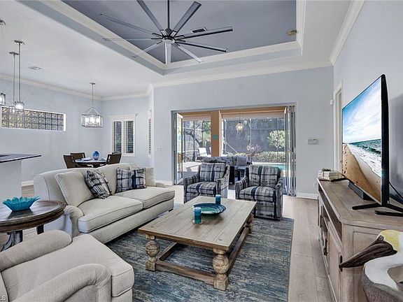 Light-filled, stylishly remodeled, and designed with an OPEN FLOOR PLAN for effortless living in The Vineyards. This updated Palermo model immediately welcomes you with brand-new luxury vinyl plank flooring, updated designer lighting, and soaring volume ceilings that enhance the sense of space and elegance. The true showpiece of this home is the outdoor oasis. A dramatic Euro-Wall Vista Fold opens the back of the home to a large lanai with a sparkling pool and spa, creating the perfect backdrop for entertaining or unwinding in private. The peaceful preserve views provide a serene and natural setting that makes this space feel like your own personal retreat. Inside, the remodeled primary bath offers a spa-like escape with a freestanding soaking tub, walk-in shower, dual sinks, and elevated finishes. The spacious primary suite also includes two custom walk-in closets for function and luxury. Additional upgrades include two new A/C units (2022), GE Profile washer & dryer (2024), fresh interior paint, a hurricane-impact front door, and a newer water heater and pool pump (2019). Set within the established Vineyards community (NO CDD), residents enjoy the option to join the private country club featuring two championship golf courses, tennis, pickleball, bocce, a fitness center, spa, and fine dining—all just minutes to Naples’ beaches, 5th Ave., and Mercato. Move-in ready and beautifully updated, this home blends style, comfort, and a backyard retreat that captures the best of Florida living. Schedule your private showing today.