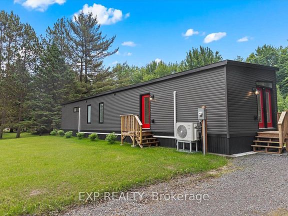 List price includes HST-buyer will be able to apply for the HST rebate after closing- great for cash flow or to make exterior improvements like decks or shed. Simplify your modern lifestyle without sacrificing outdoor space and privacy. This brand new 68x16 home is on a 1/2 acre lot backing onto forest in the stunning land lease community of Rockdale Ridge in Vars- only 15 minutes to St Laurent, Embrun or Orleans! Canadian built by Prestige Homes, this home features modern open concept design with high ceilings and luxe finishes! Open concept main living area offers a wall of windows- putting natural light and serene outdoor views front and centre. Spacious primary bedroom is located at the end of the hall with a large walk in closet and luxe ensuite bath with 5' glass shower and large vanity with dual sinks. Additional bedroom, main 4pc bath, and convenient laundry station completes the interior layout. Spacious yard offers plenty of room for a deck- or enjoy a low maintenance propane firetable. Only 15 minutes from St. Laurent Blvd. Monthly land lease fee of $689 includes property taxes and garbage collection. Community is on City of Ottawa water. Home includes all appliances, hot water tank, fresh air exchanger and heat pump. Offers must be conditional on Park Approval of Buyer's Land Lease Application.
