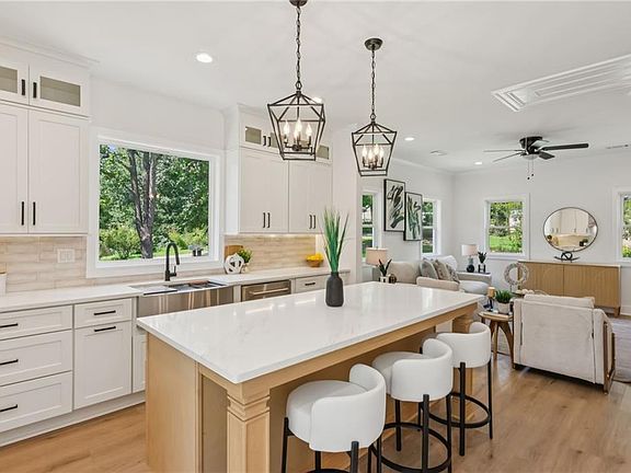 MOTIVATED SELLER! Welcome to this beautifully renovated 4 bedroom, 3 bath home offering 2,200 square feet of high-end living in a desirable lakeside community. Completely taken down to the studs and rebuilt with no detail overlooked, this like-new home blends thoughtful design, luxurious finishes, and unmatched functionality. Inside, you’ll find an open-concept layout with designer flooring, custom lighting, and premium finishes throughout. The chef’s kitchen is a true centerpiece, featuring Z-LINE and GE Profile stainless steel appliances, quartz countertops, custom cabinetry, lighting, and a spacious island perfect for entertaining. Each of the three full bathrooms has been designed with spa-like detail, offering elegant tile work, designer fixtures, and sleek vanities. The primary suite features a luxurious en-suite bath and a custom walk-in closet built for organization and style. Flexible living spaces set this home apart. The lower level features a secondary living space and two flex spaces perfect for a home office or gym. The home also includes two separate washer/dryer hookups for added convenience. Every system has been updated, including a brand-new HVAC, water heater, electrical, plumbing, septic system, and roof. With seasonal lake views and optional access to a private neighborhood boat ramp, you'll enjoy the perfect blend of comfort, luxury, and lake life. Large lot offers endless potential for an outdoor oasis. Located in a quiet, friendly community, this move-in-ready home is ideal as a full-time residence or weekend retreat. Come see what makes this one-of-a-kind renovation so special!