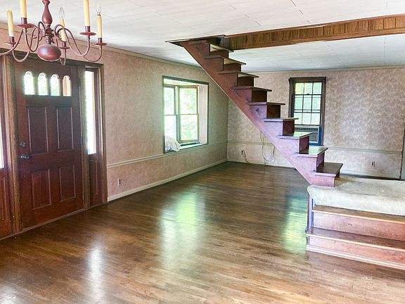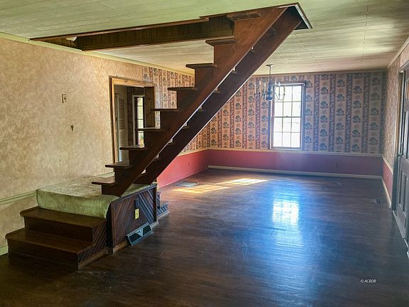 Farmhouse Style Home on 3.4 ac. m/l. With a little TLC, this handicap accessible home can be a great home! Sitting on 3.4 m/l scenic acres, the property includes a detached 2-car garage with carport, large pole building, and an old in-ground swimming pool that nature has converted into a pond. Inside you'll find a flex room which could be a dining room, sitting room, etc. with access to a full bath. The kitchen has ample storage, and the living room has hardwood floors. The main bedroom is off of the living room. There is a convenient first floor laundry and a very spacious handicap bathroom with tiled flooring and a dual shower. This home needs some work and a new roof, but would be a great home for the right person. Being sold as-is to settle estate.