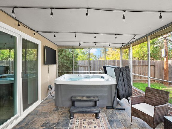 Mature landscapingPrivate hot tubBright open floor planStainless-steel dishwasherUpgraded kitchenEnclosed patio