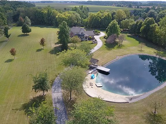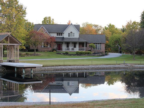 Beautiful 5 acre retreat in Liberty-Benton Schools Custom home with multiple living spaces, including a family room, living room with fireplace, and sunroom. Kitchen boasts custom cabinets, quartz counters, breakfast area and formal dining. Main floor master suite has a private bath with separate tub and shower. All bedrooms have generous closets Basement provides added living space and storage. You'll enjoy the custom patio, hot tub, or pond with beach 3 car attached, plus 2 car detached garage Updates: windows, roof, furnace, water heater, patio, water treatment, generator, and flooring.