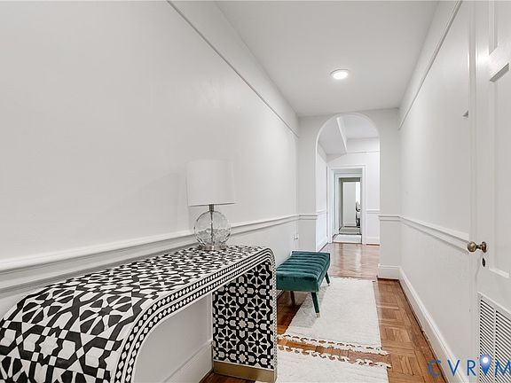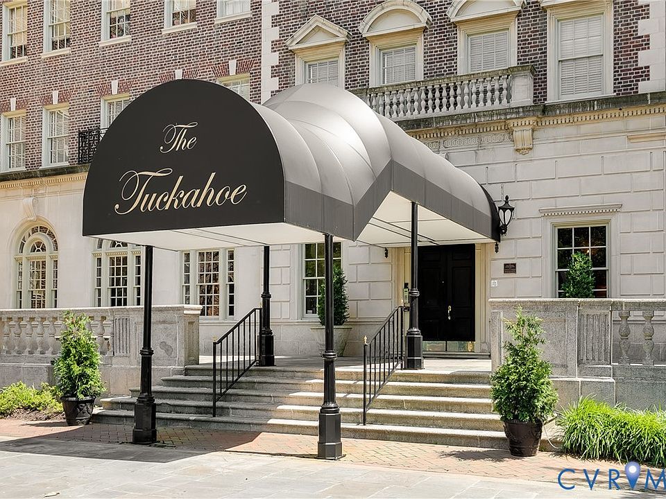 Don't miss the chance to see this move-in ready unit at the lovely and historic Tuckahoe, a beloved 1920's architectural gem in a premiere location in the near west end. This fully renovated condo is a bright and light second floor unit and has 2 bedrooms, 1 full and 1 half bath (just added). The large foyer leads to a bright living room with an arched doorway opening into the dining area. A built-in desk by the window provides a nice sunny spot for working, and a new chandelier has been installed above. The renovated kitchen has new tile backsplash, stainless steel appliances, granite countertops, new tile floor, built-in microwave.The primary bedroom has nice, custom built-in storage, a desk area, and adjoins the renovated full bath. Bedroom 2 has built-in cabinets and a closet. The full bath is renovated and has a large shower, new vanity, new tile flooring. A lovely new half bath has just been added off of the center hall. Neutral throughout, this unit is move-in ready and has been recently painted with recessed lighting and new lighting throughout. Enjoy easy living and lovely architectural details with lovely common areas, and enjoy sunsets from the rooftop spaces above. Designated parking space, elevator. Monthly fee includes all utilities except cable/WiFi.