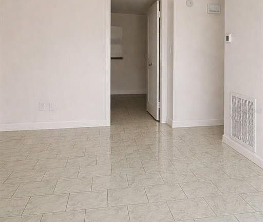 Generously sized bedroomNeutral finishesTile flooring throughout
