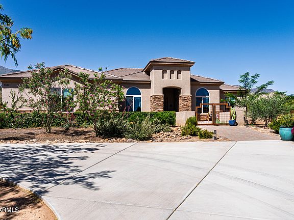 Stunning custom home in sought-after Ramsey Canyon! This 3,117 sqft luxury home features 4 bedrooms + den, 3 full bathrooms, and breathtaking mountain & waterfall views. Professionally designed landscaping with fruit trees, custom iron fencing, gated paver driveway, and a circular drive set the stage. Enjoy a front courtyard and expansive back patios perfect for outdoor living. Inside, you'll find 12' & 14' ceilings, luxury vinyl plank flooring throughout, a chef's kitchen with granite countertops, double wall ovens, and a walk-in pantry. Enjoy spacious living with formal dining & living rooms, a great room, and oversized den with access to the backyard. The primary suite includes patio access, a spa-like bath with soaking tub, walk-in shower, and custom walk-in closet. A true must-see!