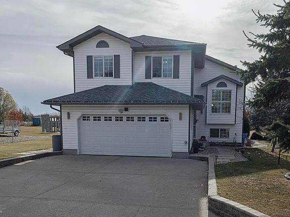 Beautifully maintained & upgraded 1400 sqft + finished basement bi level style home with bonus floor area, featuring 3+2 bedrooms & 3 bathrooms, located on 3.90 beautifully landscaped acres in Sturgeon Valley Estates. Main floor features a large living room, dining room piano window & patio doors with access to sun deck & renovated kitchen with granite counter tops, moveable island, pantry & stainless steel appliances. Primary bedroom features barn doors, walk in closet & 3 piece ensuite. Bedrooms 2 & 3 & the upgraded main bathroom are located on bonus/upper level. Fully finished basement features a family room with gas fireplace, bedrooms 4 & 5, upgraded bathroom & large laundry room. Oversized heated garage is 26'x22'. Outdoors you'll find a multi level deck (dura decking), new hot tub (2023), 2 sheds, play structure, fenced horse pen with lean to, firepit, above ground pool, RV parking, plenty of trees & perennials. Commune with nature in this peaceful and private country residence!