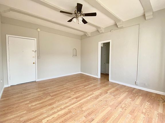 Bright and airy studio apartment with an upgraded and remodeled eat in kitchen, huge walk in closet and wardrobe and stylish bathroom with green and black tiles reminiscent of the 1920's. The gleaming real hardwood floors reflect all the sunlight that comes in through the multiple paned windows letting lots of fresh air into the space. The kitchen has classic black and white tiles, includes both the refrigerator and stove. There's plenty of space for a dining table next to another big bright window. The closet has a built in vanity, drawers and storage space. Lot's of creative opportunities here! There's a shared laundry room downstairs, we are cat friendly. Please call or text to set up an appointment. Tenant pays for electricity and gas, plus a $50 flat fee for water and trash utilities. Cat friendly. One parking space available for $100 per month.