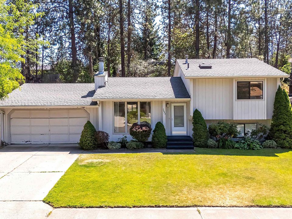 Equity potential galore with this functional 4- Level Home located on a quiet Northwest Spokane cul-de-sac. Main floor features a great room concept with vaulted ceilings and gas insert fireplace in spacious living room, open to kitchen and dining area. Upstairs you will find two bedrooms, a full bath and laundry, the lower-level primary suite features double sinks, jetted tub, built in vanity and a huge walk-in closet. Downstairs you will find a second family room, and a non-legal egress bedroom. A new efficient gas forced air furnace and central A/C have been installed in the last few years. With some sweat equity this home will shine again.