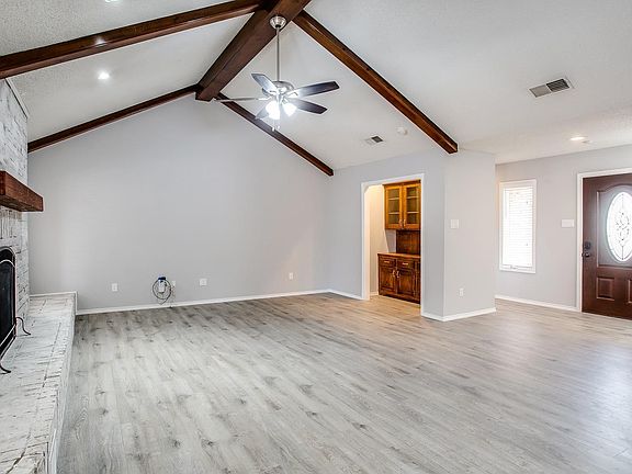 Welcome to your new home featuring a POOL! This beautiful 3-bedroom, 2-bathroom gem offers an oasis of comfort and style, complete with a POOL to enjoy on those warm summer days. Step inside and be greeted by a cozy fireplace and new vinyl plank flooring in the living room. You'll love the isolated primary bedroom, and the remodeled primary bathroom with a large shower! Enjoy the comfort of new carpet in the bedrooms, along with new Anderson windows! Relax and entertain in style in the backyard oasis featuring a covered patio overlooking the pool, creating the perfect setting for outdoor gatherings. Notable updates include new vinyl plank flooring, carpet, primary bath remodel, new Anderson windows in the bedrooms, and HVAC is less than a year old. Plenty of storage throughout! Located in a desirable neighborhood close to Preston Smith Elementary, this home offers the perfect setting for nightly walks. Don't miss out on this wonderful home, call to schedule your showing today!