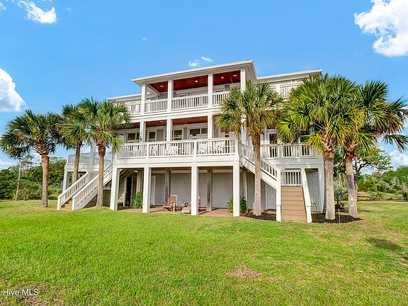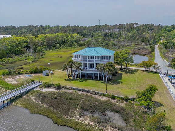 Boaters Paradise! Set on 4.9 private acres with over 260 feet of direct frontage along the Intracoastal Waterway, this exceptional home offers panoramic views of lush marsh, Masonboro Island, and an unmatched coastal lifestyle. Custom built by Eddie Collins, this three-level residence effortlessly blends timeless craftsmanship with modern functionality—all just steps from the water.