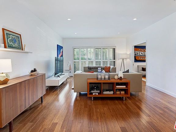 Gorgeous Culver City condo that feels like a home. This spacious 1700sf corner unit, is on the 1st floor and opens to the building lobby so it feels like a private residence. Windows look out to the grass yard, trees and quiet street. With two large bedrooms, including a huge master suite with four closets offering tons of storage, and a large den/office/nursery that could be closed and used as a 3rd bedroom. The remodeled condo boasts bamboo floors, plantation shutters, recessed lighting, Kitchen Aid appliances, new washing machine, quartz countertops, pocket doors, custom built-ins, custom wet bar, ample storage, two walk-in closets with Elfa storage systems, jet tub in the master bathroom, two car gated parking, central air & heat, and generous amounts of natural light. The quiet 11-unit building offers a nice community with a private pool and gated patio and grass yard, located near a Culver City park with sports courts, fields & play areas.
