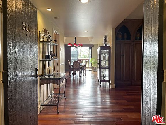 Spacious Top-Floor Corner Penthouse with Panoramic Views. This rare, extra large unit was originally built by the developer for his own use - offering exceptional space, light, and privacy. Step through the double-door entry into this inviting home filled with natural light and treetop views from every window. The living and dining areas feature beautiful hardwood floors and open to two large balconies with sweeping views from multiple directions. The spacious custom kitchen with tons of cabinets make it a chef's dream. The unique floor plan includes a bedroom with it's own private entrance into the complex hallway, offering flexibility for a guest suite, office, or extended family. Additional highlights include three private parking spaces, extra storage, and access to a sparkling community pool. Conveniently located near shopping, dining, transportation, and a nearby Culver City park with sport courts, fields, and play areas. All within the award-winning Culver City School District. Very easy to show.