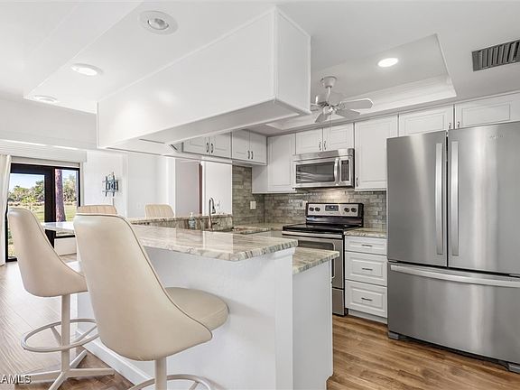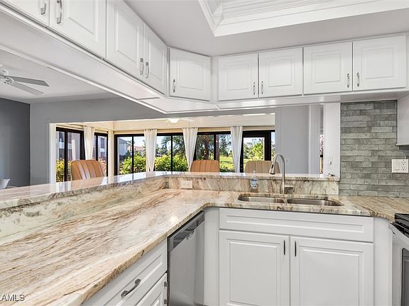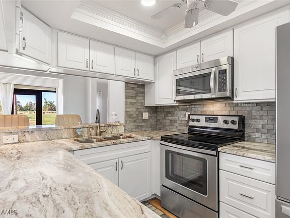 Nestled within the prestigious Hideaway Country Club, this immaculate first-floor condo offers an unrivaled blend of luxury and comfort. With 3 bedrooms and 2 bathrooms, this property is a perfect retreat for those seeking a serene lifestyle with the convenience of modern amenities. The condo overlooks the meticulously maintained golf course, offering stunning views that can be enjoyed from the comfort of your home. The property has been recently updated, boasting a new roof installed in 2020 and a state-of-the-art AC system added in 2022, ensuring year-round comfort. Inside, you will find luxury vinyl flooring that combines durability and elegance. The kitchen features modern appliances, granite countertops, and ample storage space. Living in this condo means you are just a short walk away from the clubhouse, where you can indulge in various amenities. Whether you prefer to spend your days playing tennis, enjoying a meal at the restaurant, a cocktail in the lounge, working out at the fitness center, or simply relaxing by the pool which is just steps away from your door. Everything you need is within easy reach. The property offers golf enthusiasts a unique advantage with no trail fees for self-owned golf carts. Golf and tennis memberships are optional, allowing you to tailor your lifestyle to your preferences. The location is unbeatable, conveniently situated close to all Fort Myers amenities, including beautiful beaches, shopping, dining, and entertainment options. This condo is more than just a home; it’s a lifestyle. Whether you’re looking for a peaceful retreat or an active community, this property in the Hideaway Country Club offers the best of both worlds. Impact windows and doors for an added sense of security.