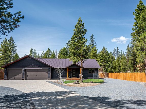 The details were not missed on this stunning Custom Built Home backing to the Deschutes National Forest. This home features 3 bedrooms, 2 bathrooms and a beautiful open floor plan with a wood burning fireplace. There is incredible stone and tile throughout the entire home with granite countertops and cherry wood cabinetry. The primary bedroom has two large walk in closets and an over the top bathroom with Jacuzzi tub, double vanity and steam shower. This home has a new metal roof in 2023, new exterior paint, treated stone, Kenetico water softener and filtration system. The driveway is stone paver with 3 car garage, RV parking and hook ups. The backyard is fully landscaped and features a 10X20 insulated shed and two covered storage sheds. This property is fully fenced with two gates and access to public lands out the backyard. Don't Miss This One!