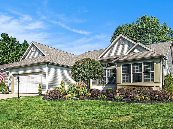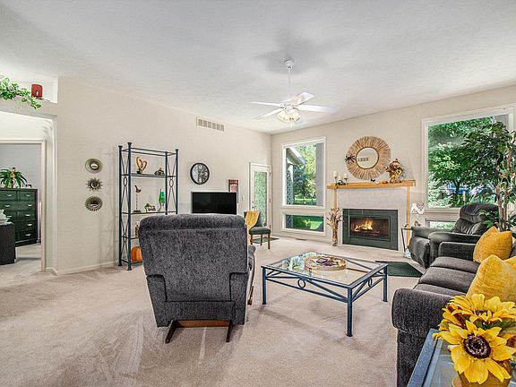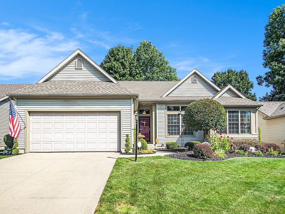 Welcome to villa living in the small community of Garden Place on South Bend’s south side, where convenience meets comfort. This lovingly maintained home offers a desirable split-bedroom floorplan with thoughtful details throughout. The spacious great room is a showstopper with soaring windows that flood the space with natural light and frame views of the beautifully landscaped backyard. A cozy fireplace adds warmth and charm, making it a perfect gathering spot year-round. The kitchen is a delight with its tray ceiling, abundant windows, and bright eat-in area—an ideal spot to enjoy morning coffee while basking in sunshine. An open dining space off the foyer offers flexibility for formal meals or an additional sitting area. The primary suite feels like a private retreat, featuring vaulted ceilings, dual-sink vanity, soaking tub, separate shower, and a generous walk-in closet with expansive storage space. Two additional bedrooms share a full bath in a private wing, providing comfort and privacy for guests or household members. Main-floor laundry adds to the home’s practicality. The unfinished basement offers endless potential for additional living space, storage, or hobbies. Step outside to the expansive patio and enjoy the meticulously landscaped yard—a lush, private setting designed for relaxation. As a villa, exterior maintenance is handled for you, giving you more time to enjoy life. With pride of ownership evident throughout, this home is move-in ready and waiting for its next chapter. New roof 2019, new water heater 2022.