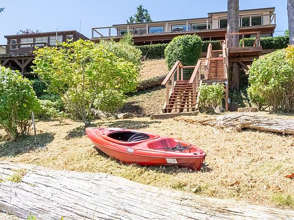 When it comes time to eat open up the sliding glass doors to let the cool breeze in, then dine together at the custom, built-in table with additional seating for four up at the breakfast bar in the kitchen. There are three generous bedrooms within the home with each offering comfortable beds topped in soft, quality linen along with plenty of space for you to unpack and make yourself at home. Wash up in the two sparkling bathrooms including the master bath with a heated floor, a relaxing full-size tub, a shower and a his and hers vanity along with the family bathroom and a handy half bath located on the main floor. Each bathroom comes stocked with all the essentials and plenty of soft fluffy towels for your stay. Guests also have full access to the laundry with a washing machine and complimentary detergent to keep you feeling fresh and clean during your stay. On a sunny day, step out onto the main entertainment deck where you can cook up dinner on the BBQ grill as you warm yourself by the fire table and take in the stunning elevated views. Walk down to the beach and go for a swim, take out the kayak or try your luck catching dinner as you watch out for the resident sea lions and seals that can be spotted by the Illahee dock. Relax in the two-person hammock and have nap after a day spent hiking through the state park, then light the fire pit of an evening as you toast marshmallows and listen to the sounds of the water lapping against the shore.