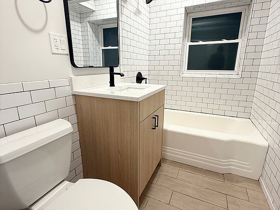 Renovated 2 Bed 2 Bath in a 8 unit building. Updated kitchen with modern cabinets, full tile bathrooms, black accent hardware. Includes washer/dryer in units, central A/C in units, intercom controlled access for Amazon Key, and smart lock in unit.