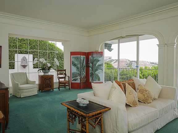 Step back in time & experience a taste of Olde La Jolla! This untouched traditional enjoys high ceilings, 7" moldings in the formal living & separate dining rooms, & walls of bay windows throughout overlooking city, bay & ocean views! The grand master features his/hers separate BAs, a dressing room, sauna & spacious sitting room with fireplace. Downstairs is a giant bonus room with kitchen/bar, indoor firepit & glass sliders that open to the beautifully manicured yard & 1,300 SqFt enclosed pool pavilion.