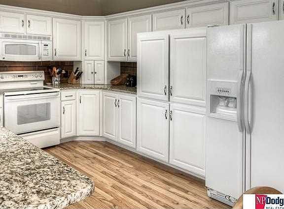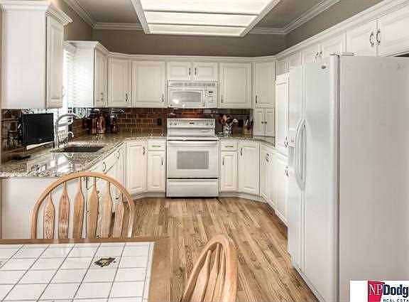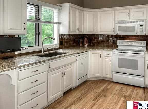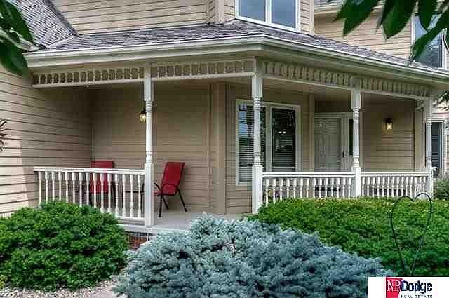 WOW! 5 bedroom, 4 bath, 3 car home w/finished walkout basement! Granite counters, crown molding throughout, wood floors on most of main level, lots of windows to view treed .39 acre lot, 2 sided fireplace. New gutters & impact resistant 50 year shingles. Master has huge private bath w/whirlpool tub, 2 walk-in closets. Finished basement has den, bedroom, rec room w/fireplace, full kitchen. Service One Warranty included. All in a very desirable neighborhood close to Millard schools & shopping.