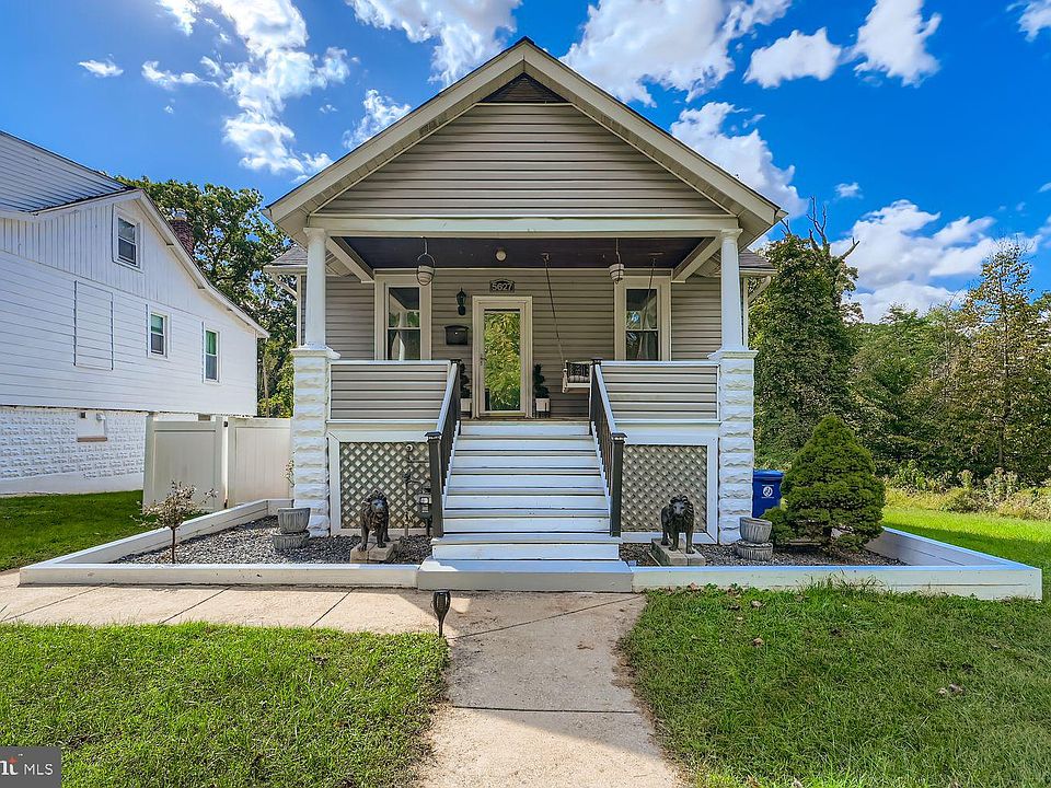 Tucked away on a desirable corner lot in the heart of Gwynn Oak, you'll find this lovely property at 5627 Wayne Ave. Enjoy serene views of greenery and the convenience of being just moments from the main thoroughfare, offering easy access to restaurants, shops, and the highway. As you approach, the front porch offers a welcoming entry with ample space for chairs, perfect for enjoying your morning coffee or evening breeze. The main level of this home boasts a thoughtful layout featuring two comfortable bedrooms and one full bathroom with tile flooring. The living room/dining room combination is highlighted by beautiful hardwood floors, elegant crown molding, and flows seamlessly into the updated kitchen. The kitchen is equipped with stainless steel appliances, tile flooring, and attractive decorative laminate countertops and backsplash. From the kitchen, step into the spacious enclosed sunroom—a perfect spot for relaxing or entertaining! Also located on the main level is a convenient pull-down staircase providing access to the attic, which offers fantastic potential to be converted into a fully finished space, and where new insulation was installed in 2025. Enjoy peace of mind with recent upgrades, including new house siding (2021), a new roof installed on the main house (2021) and a new roof on the sunroom (2019). The home's comfort is secured with the HVAC system also replaced in 2021. The partially finished basement, accessed from the kitchen, adds versatility to the property. This space includes two finished bonus rooms and a full bathroom. One of the bonus rooms provides access directly to the fenced yard! The rest of the basement is an unfinished space ideal for storage and laundry. The rear yard has 2 sheds that can accommodate your gardening tools and other supplies and a wire fence. With on-street parking and a secluded location, this home offers a wonderful blend of character, convenience, and opportunity. Don't miss the chance to make this Gwynn Oak gem your own!