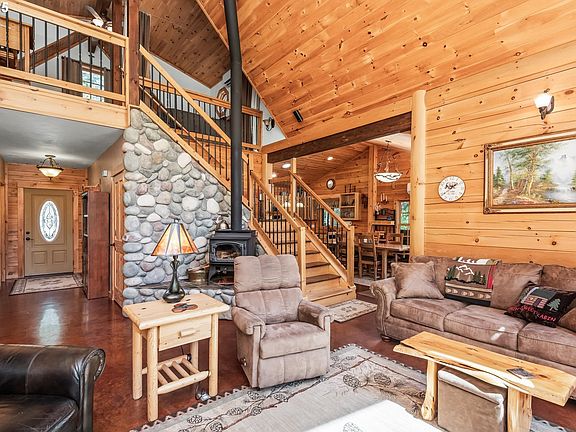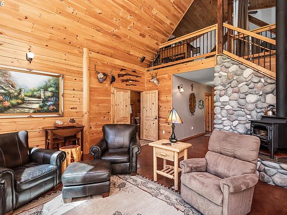 Gorgeous log home with floor-to-ceiling views of Horse Creek, a stunning wild and scenic river. Nestled on 1.77 private acres, this property features a large covered carport for an RV and plenty of space to relax and enjoy nature. Inside, the home is warm and inviting, with a beautiful blend of wood, natural light, and thoughtful design. Highlights include a cozy woodstove, river rock accents, radiant floor heating, stained concrete floors, a spacious kitchen with an eating bar, and a luxurious owner’s suite with breathtaking views.