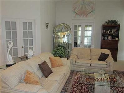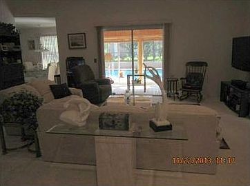 Lovely custom built home is designed for comfort. The split plan has an office, 2 bedrooms, 1 bath and sitting area with wood floors at one end with the master suite at the other. The master bath has a walk-in shower and double sinks. A great room in between overlooks the sparkling pool area. Sliding doors on the lanai open up for additional space for entertaining poolside. All appliances and most furnishings are included. A small utility building off the pool area has a wall A/C. Even the garage has a finished floor and nice storage units.