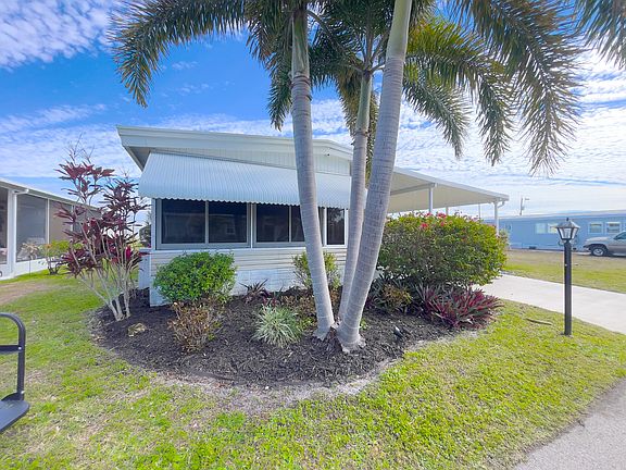 Discover beautiful Old Bridge Village a 55+ Co-Op mobile home park with Gulf access, located right on the Caloosahatchee River! This home has withstood both recent hurricanes with NO water intrusion! Rest easy knowing you're investing in a property that's built to last and is completely MOVE-IN READY-no repairs or touch-ups needed! Just unpack and start enjoying your new home. Fully furnished, this 2 bedroom/2 bathroom home offers a beautiful space with stunning new renovations. Additional features include: laminate flooring, new sub flooring, new spray foam insulation, newly redesigned kitchen with all new appliances, granite countertops, new cabinetry, 3 new efficient mini split units, and new plumbing. Off the living room is the screened lanai with durable acrylic sliding windows, perfect for enjoying a cup of coffee, a cocktail, or just enjoying the gorgeous Florida weather. Outside you will find an extended carport, which adds extra patio space, along with a designated spot for your golf cart. BONUS-Golf cart is included it the sale of this home! Enjoy all that Old Bridge Village has to offer, from recreation facilities to social events that keep this community buzzing. The marina is one of a kind with boat slips available for rent, and boat/kayak launches. Palm Point-a scenic gathering space right along the river front, hosts many community events. Located just right across the river from Downtown Ft Myers, in a gated community, you are close to shopping and great restaurants. This is an unmatched value-your PEACE of PARADISE awaits!!! WELCOME TO WHERE SOUTHERN COMFORT MEETS a tropical retreat!