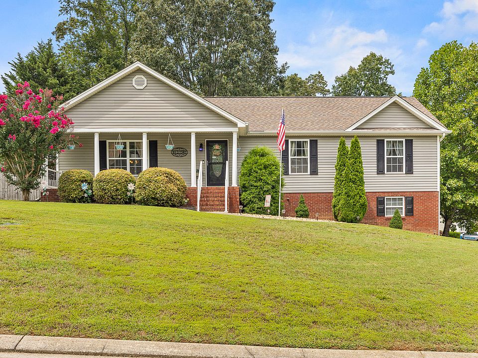 Welcome to this stunning 3-bedroom, 2.5-bath home located in the highly desired Hamilton on Hunter subdivision. Situated on a peaceful cul-de-sac, this home features a rocking chair front porch. Inside, the foyer leads to a main floor with beautiful solid hardwood and tile flooring, while the bedrooms are fitted with easy-care laminate. The main level features a living room/great room with a vaulted ceiling and a cozy gas fireplace; formal dining room; a spacious kitchen with granite countertops and stainless steel appliances. The primary bedroom boasts a tray ceiling, a walk-in closet, an en suite bathroom with a separate shower and a jacuzzi tub. Two additional generously-sized bedrooms share an updated full bathroom. Ideal for entertaining, the outdoor space includes a spacious screened-in porch, an open-air deck, and a fenced backyard. The finished basement offers versatile living space with two recreation rooms, built-in shelving, and an extra half bath. Plus, you'll appreciate the oversized two-car garage for ample storage and parking. Conveniently located near shopping, schools, and other amenities, this home blends style with practical living. Don't miss the chance to see this exceptional home—schedule your showing today!