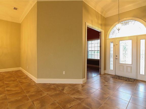 Elegant 5 bedroom 3 bathroom home in gated Vintage View. Home features a large open floor plan with 10-12 foot ceilings throughout. Front door opens into the foyer and formal living and dining rooms with sliding glass doors allowing lots of light. Large kitchen with wood cabinets and granite counter tops opens to family room with breakfast bar and lots of counter space. Stainless steel appliances, hanging pendant lights and tiled breakfast nook round out this wonderful kitchen. Family room has double tray ceiling and is wired with surround sound speakers. Master bedroom has a tray ceiling and large sliding glass door leading to back patio. The master bath features double walk-in closets, separate his and hers vanities, private water closet and large walk-in shower. The center piece to the master bath is the large garden tub with elegant mirror and fixtures. Bedrooms 2 and 3 are located just off kitchen and share a hall bath. Bedroom 4 is a private suite with its own full bathroom and access door. Bedroom 5 is located at front of home and could double as home office or den, with double doors and a closet. Back of home features a large covered patio with ceiling fans. With a three car garage, pavered driveway, and lots of storage space, this home is a must see!