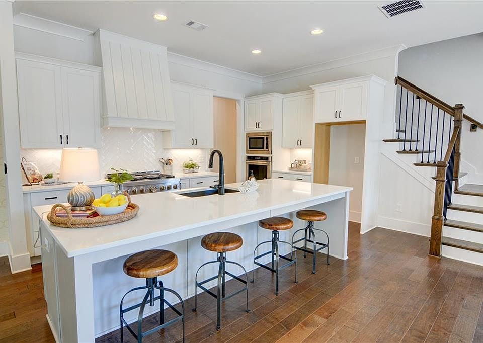 - Features: Cabinets White, Kitchen Island, Pantry, Stone Counters, View to Family Room