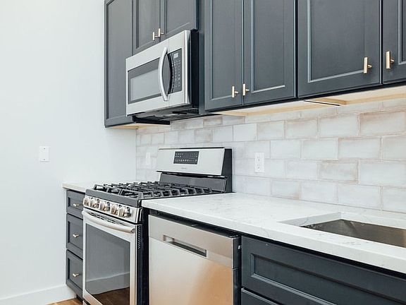 Beautiful newly renovated 4-family building 2 blocks from McGorlick Park! This 3 bedroom, 2 full bathroom unit features full/queen size bedrooms. Enjoy a spacious living room with exposed brick plenty of space for your couch, coffee table, TV and more! Brand new kitchen features stainless steel appliances including a dishwasher and a kitchen island with built in space for seating . Windows in every room and hardwood floors throughout. Ductless A/C and energy efficient washer/dryer in unit!