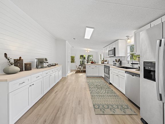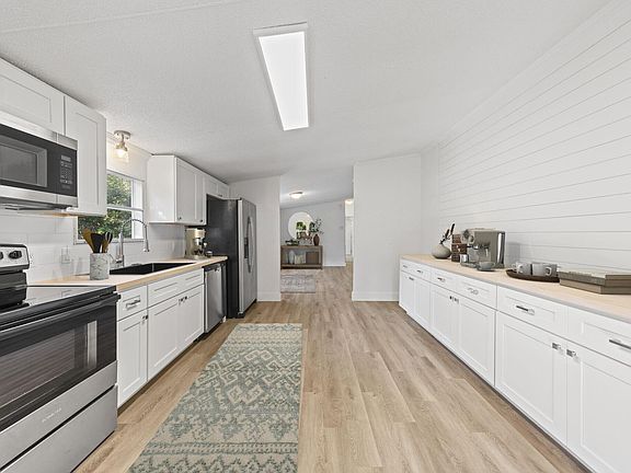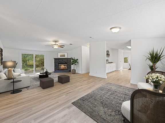 Situated on two serene acres, 563 West Bach Dr. offers the perfect blend of country charm and modern comfort. This beautifully renovated double-wide home has been thoughtfully updated from top to bottom, giving buyers the rare opportunity to enjoy rural living while remaining just minutes from town, shopping, and local attractions. Inside, you will find a spacious open layout filled with natural light and enhanced by fresh interior paint, LVP flooring, and new carpet. The kitchen has been completely revitalized with brand-new appliances, custom countertops, and stylish new cabinetry, while a custom backsplash adds a touch of elegance. Both bathrooms feature updated plumbing, upgraded fixtures, and a stunning custom tub with tile surround, creating spa-like retreats for relaxation. Throughout the home, new doors, trim, and hardware add a fresh, modern feel, complemented by updated lighting and electrical upgrades that bring both function and style. Comfort is assured year-round with a new HVAC system and water heater, while new drywall and siding improvements provide lasting quality. Step outside to enjoy a brand-new front deck, fresh exterior paint, upgraded windows and sliding doors, and landscape enhancements that make the property both inviting and functional. Whether you are looking to garden, entertain, or simply soak in the peace of your private acreage, this property offers the space and versatility you have been searching for. With every major system and finish carefully renewed, this move-in-ready home captures the best of country living and convenient to everything you need. The photos provided are virtually staged to help you envision how easily this home can match your lifestyle.