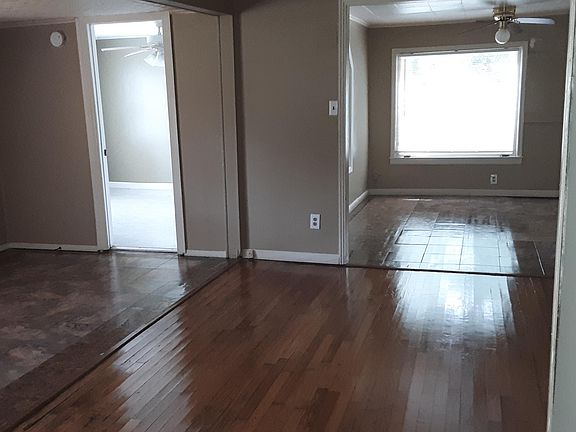 Large Kitchen with a laundry room. Attic, dining room, living room and three bedrooms. Central heat and A\C is furnished by window units the landlord has provided. House is on a half acre and has a big back yard with a wrap around driveway. Large detached garage. Back and front porch are roofed. School bus stops right outside front porch. Pay rent early and save $25. Penalty for late payment. Renter must have good credit, a job and good references. Renter pays water and utilities. Music should be respectfully used. Not looking for party people.