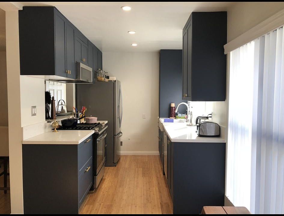 Sleek custom midnight-sky-blue finishState-of-the-art stainless steel appliancesDedicated storage roomGenerously sized bedroomsTwo tandem parking spotsModern kitchen