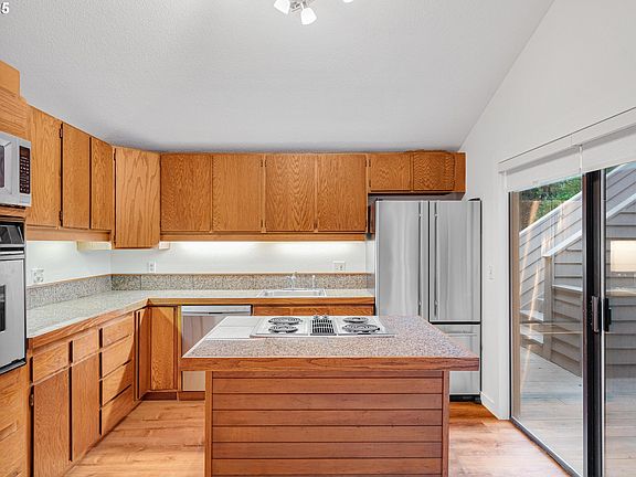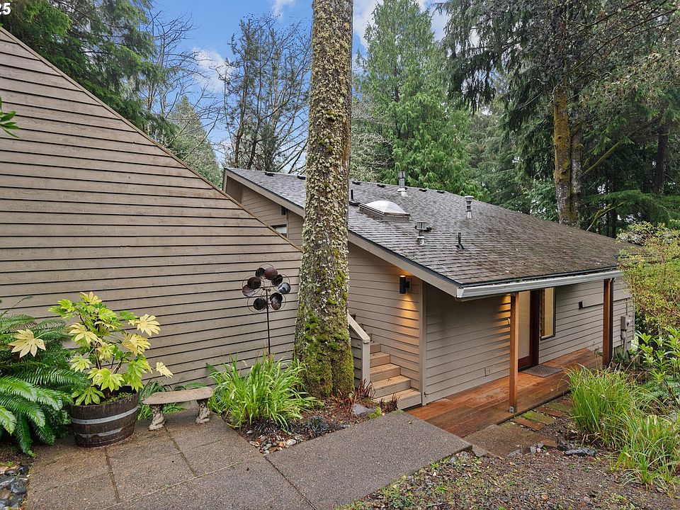 Lodge inspired charm shines throughout with warm cedar accents, vaulted ceilings, expansive windows, and a cozy gas fireplace. A slider off the kitchen opens to an oversized deck, perfect for outdoor living and entertaining. The spacious primary suite features modern closet doors and an updated bath. Two additional guest bedrooms share a beautifully renovated bathroom.Above the detached garage, you'll find a fantastic studio/guest quarters or office complete with a half bath—ideal for added flexibility. Enjoy the serenity of multiple decks nestled among the trees, overlooking the 4th tee of the Peter Jacobsen designed 18 hole golf course.Recent improvements include foundation and cross-bracing work, new flooring, two fully renovated bathrooms, fresh paint, updated lighting fixtures, and more!