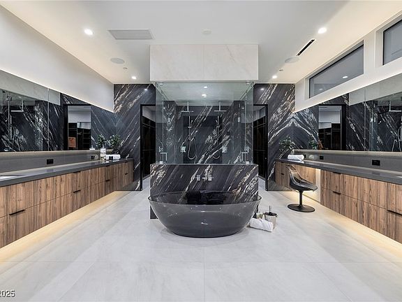 Serenity in Grd Gated MacDonald Highlands by Richard Luke,AIA |Brand New 1-Story w/Sweeping Strip,Red Rock Mtn&City Views| 6734 SF, 4 Bed+Office, 5 Bath, 4 Car,.44 Acres | Movie Theatre/Media Rm w/Popcorn Bar|Strip-View Office|Open Concept Design w/Grt Rm|Glass Wine Cellar|Wet Bar w/Kegerator & Indoor/Outdoor Seating|Wolf/Subzero Gourmet Kit | Strip View Primary w/Gorgeous Spa Bath Including Steam Shower,Soaking Tub,SepWater Closets&Oversized Custom Closet | Next-Gen/Casita Guest Wing w/Full Kitchen + Family Room | Infinity Pool & Spa w/Aquarium Wall Feature + Sunken Swim Up Outdoor Kitchen w/Bar | Resistance Jet Feature in Pool |Sunken Outdoor Fire Lounge| Putting Green| Outdoor Shower| Indoor Linear Fireplaces | Epoxy Garage w/Storage | Control 4 Automation | Exclusive Grd-Gated Country Club Community| Mins to Strip, Airport, Shops, 5-Star Restaurants & Top-Rated Schools | Nevada has NO State Individual, Corporate, Estate or Inheritance Tax offering significant savings for Residents.