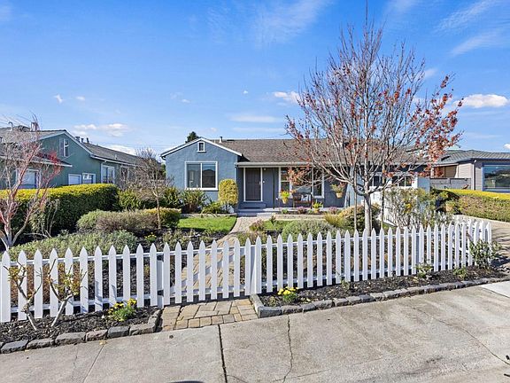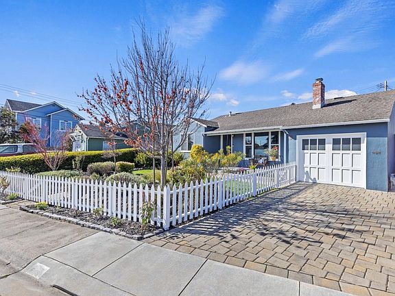 Nestled in the heart of San Bruno Mills Park neighborhood, this stunning and expanded 2BR, 1BA home blends timeless charm with modern updates. Supplemental room with skylight offers versatility as nursery or office. Loft room above garage with recessed lights has functional space for WFH. Featuring gleaming hardwood floors, vaulted ceilings, & skylights, the home boasts an open, airy layout perfect for everyday living and entertaining. The inviting living room includes a cozy gas fireplace and built-in shelves, while the elegant dining room showcases a brass chandelier. The remodeled kitchen, with white shaker cabinets, quartz countertops, and stainless steel appliances, flows seamlessly into the spacious family room, where Andersen French doors open to the beautifully landscaped backyard. The updated bathroom features radiant floor heating, designer tile, and modern fixtures. The outdoor space is a private retreat with fruit trees, a charming white picket fence, interlocking pavers, and fresh landscaping. With dual-pane windows, upgraded electrical, and a completed sewer lateral clearance, this move-in-ready home offers both character and convenience. Easy access to parks, shopping, dining, SFO, BART, Caltrain, and major highways makes this an exceptional place to call home.