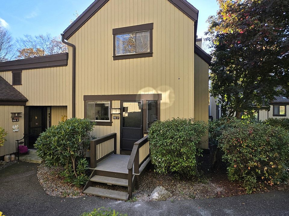 This bright and sunny New Englander style townhouse has a great location in Heritage Village with easy access in and out of the complex plus walking distance to most activity buildings and pools 1 and 2. While the condo has stairs, you also have your own private entrance, no one above or below you, and a real dining room that flows into the living room for easy entertaining. The 2 spacious bedrooms upstairs provide a quiet place to relax even if something's happening on the main level. Another popular feature of the New Englander is the double deck. The covered deck is accessible from the living room slider, while another deck above it, in the larger of the 2 bedrooms will feel like you're perched in a tree house; offering seasonal views of the golf course and a delightful place to relax. The powder room is tucked away for privacy while the wood burning fireplace provides a cozy place to curl up. Newly refinished hardwood floors on the main level. On the upstairs landing you'll find the 2 year old washer and dryer and an additional closet providing even more storage. Both bedrooms share the renovated full bath with a low step shower. NEW HEAT PUMP. End garage w/ storage locker. HOA includes Spectrum w/ premium channels & internet. 4 pools, clubs for all interests, tennis and pickleball courts and so much more here and in the nearby towns. Easy access to Route 84. 90 minutes to NYC, 2 hours to JFK. All residential buyers pay a one time fee of $5000 to HVF at closing.