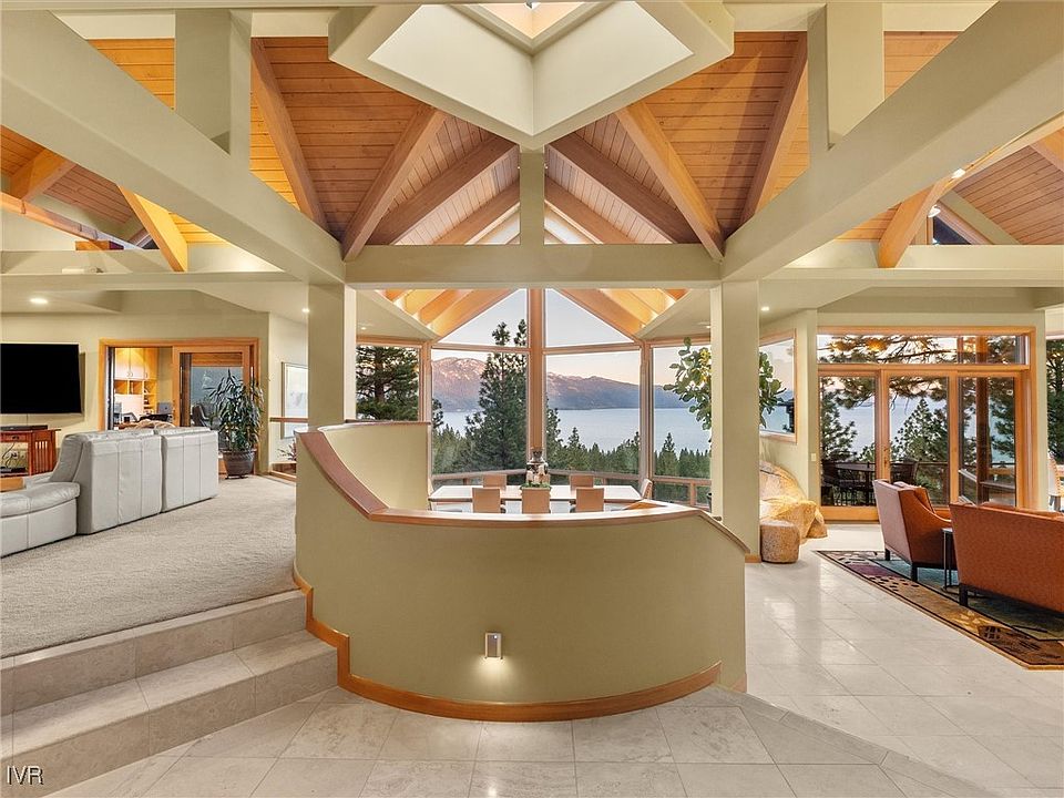 Commanding panoramic views of Lake Tahoe from every level, this stunning 6,832 sq ft custom estate blends luxury, comfort, and mountain elegance. Set on a gently downsloping 0.42-acre lot in the Ponderosa Subdivision, this 3-story home is designed to capture natural light and showcase the lake’s beauty. Expansive south-facing windows and an atrium-style dining area frame views from Sand Harbor to Alpine Meadows. The main level features an open-concept great room, kitchen, dining, lounge, and two lakeview offices. The second floor features four en-suite bedrooms including lakeview luxurious primary and junior suites. The lower level offers a private wellness retreat with an indoor spa hot tub, sauna, steam shower, yoga/meditation area, fitness room, wine cellar with red and white storage, and a fun room (also wired for movie room). A 3-car garage, snow melted walkway & driveway, and generous conditioned storage complete this exceptional property. A rare opportunity in Incline Village.