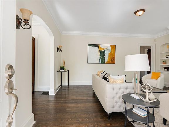 This Beltline-adjacent home, with architectural details and thoughtful updates, creates a rare blend of historic character and modern livability. From the moment you arrive, the graceful arches of the open-air corner porch invite you in and are echoed by arched doorways that flow from room to room inside. The interior showcases original hardwood floors throughout the main living areas and bedrooms, while large windows fill each space with natural light. The living room, complete with a cozy fireplace and access to the porch, offers the perfect spot to relax or entertain. Through the formal dining room, walk along the butler’s pantry with original built-ins (coffee station, anyone?) to the kitchen that combines vintage charm with modern convenience, featuring granite countertops, stainless steel appliances, and a nearby laundry area. Three main-level bedrooms provide flexibility, with two sharing a connecting bath for added convenience. Both bathrooms have been updated while maintaining their period style. Upstairs, you’ll find a spacious fourth bedroom or bonus room — perfect for a home office, guest space, or creative studio. A full-height basement offers excellent storage or potential for future expansion. And the new roof and water heater will give you peace of mind! Outside, enjoy a fenced backyard, detached two-car garage, and a driveway with plenty of parking. With a Beltline entrance, Dill Avenue Park, and a library just down the street and quick access to I-85, you’ll love being minutes from the Beltline, trails, parks, and the best of Atlanta’s vibrant energy. The home is physically staged and upstairs is virtually staged.