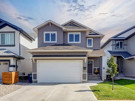 Welcome to 563 Moonlight Lane, a modern home in the thriving community of West Lethbridge. The main floor is open and filled with natural light, thanks to extra-large windows that make the living room, dining area, and kitchen feel bright and inviting. The spaces flow effortlessly, allowing you to cook, visit, and stay connected with everyone at the same time. The kitchen combines style and function with rich cabinetry, a tile backsplash, and wood-grain flooring, adding a warm, welcoming touch. Upstairs, the primary suite is a cozy retreat with its own three-piece ensuite, while two additional bedrooms, a full bath, and laundry area keep everyday family life practical and convenient. The walkout basement is a bright blank canvas ready to be customized, opening onto a covered patio and a spacious backyard with alley access. Additional features include central air conditioning for year-round comfort and convenience of a gas line already plumbed into the garage, should you decide to add a heater. This home is spotless, move-in ready, and still feels like new. Best of all, it’s located in one of the most family-friendly neighborhoods in Lethbridge, just steps from a green space, playground, and excellent schools. It’s the kind of community you’ll be happy to come home to.